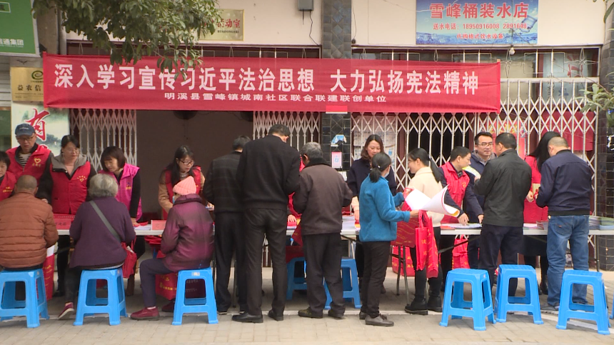 今天是第七個“國家憲法日”,今年的主題是:深入學習宣傳習近平法治思想,大力弘揚憲法精神。圍繞這一主題,明溪縣開展憲法進社區主題宣傳活動,弘揚憲法精神,維護憲法權威。 12月3日,明溪縣雪峰鎮城南社區、聯建聯創單位聯合開展“國家憲法日”主題宣傳活動。工作人員通過向過往行人發放《百姓法治寶典》、《中華人民共和國憲法修正案》、《憲法知識》等各種法律法規宣傳單,廣泛宣傳憲法關于公民基本權利、義務和居民委員會、基層社會治理的有關規定。同時,工作人員還利用宣傳展板,現場講解等方式,宣傳習近平新時代中國特色社會主義思想,習近平法治思想,特別是關于憲法的重要論述等內容,耐心解答社區群眾提出的法治需求和關注的熱點問題。 活動中,志愿者們還為社區居民開展量血壓、測血糖等醫療衛生便民服務活動,受到了群眾的歡迎。(曾德林、溫愛芬、鄧美玲) |